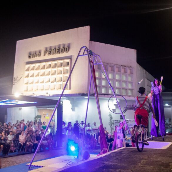 O Sururu Circo voltou a ocupar o Circuito Penedo de Cinema com sua energia vibrante, seu gesto coletivo e sua pesquisa sobre o circo contemporâneo. Pela segunda vez no festival, o grupo levou à cidade ribeirinha um espetáculo que mistura acrobacias aéreas, malabarismo, palhaçaria, equilíbrios e dramaturgia construída coletivamente, em diálogo direto com as artes visuais e o cinema.